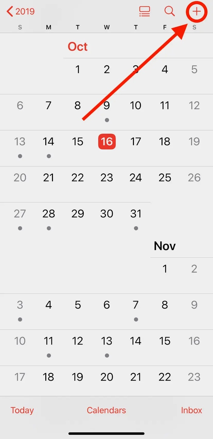 - Create a new event by tapping the + icon on the top right