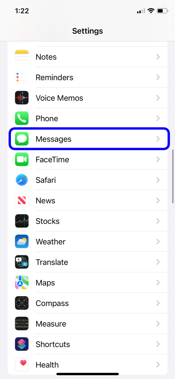 - Scroll down to Messages